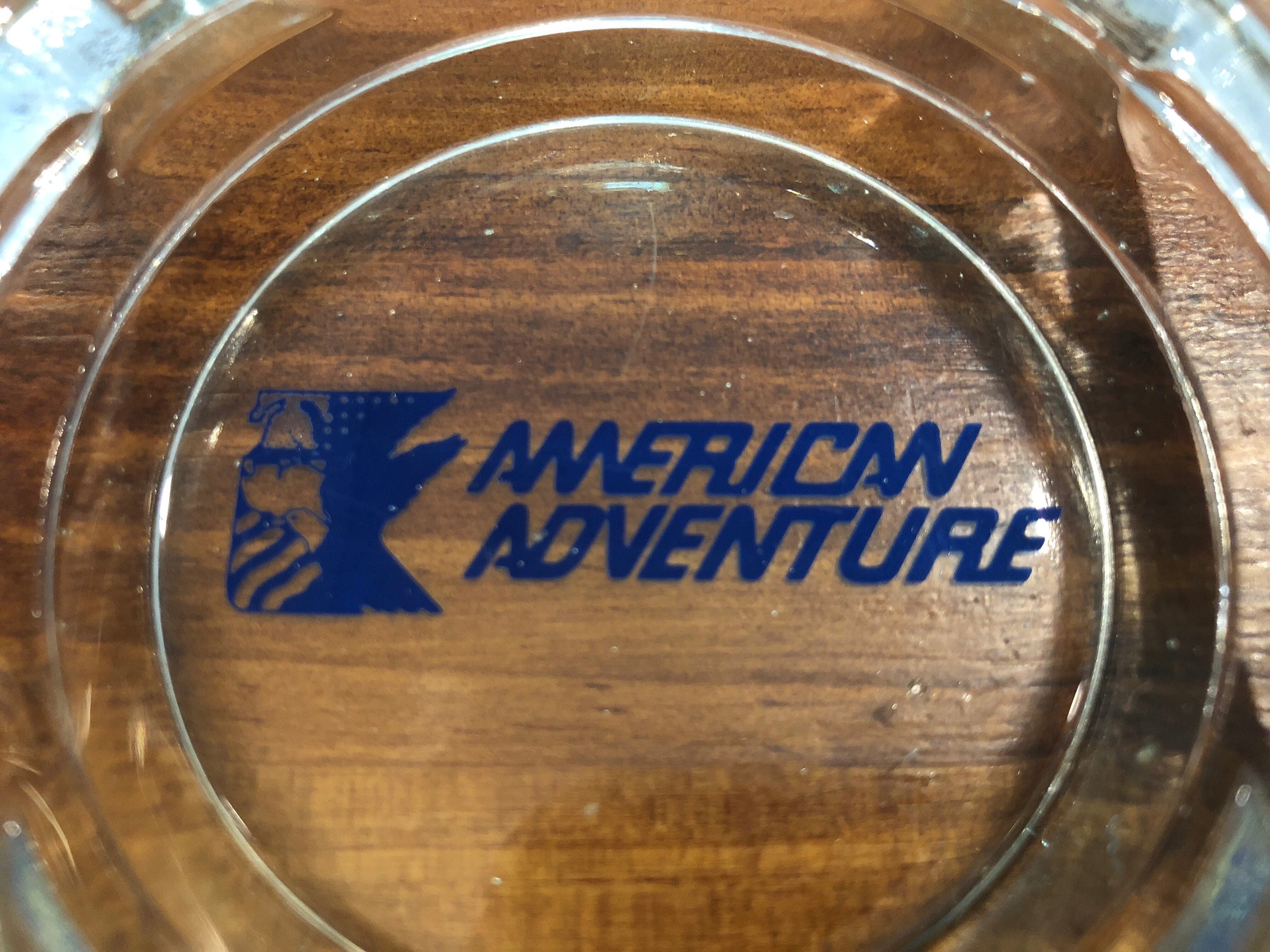 「AMERICAN ADVENTURE」のヴィンテージガラス製灰皿。