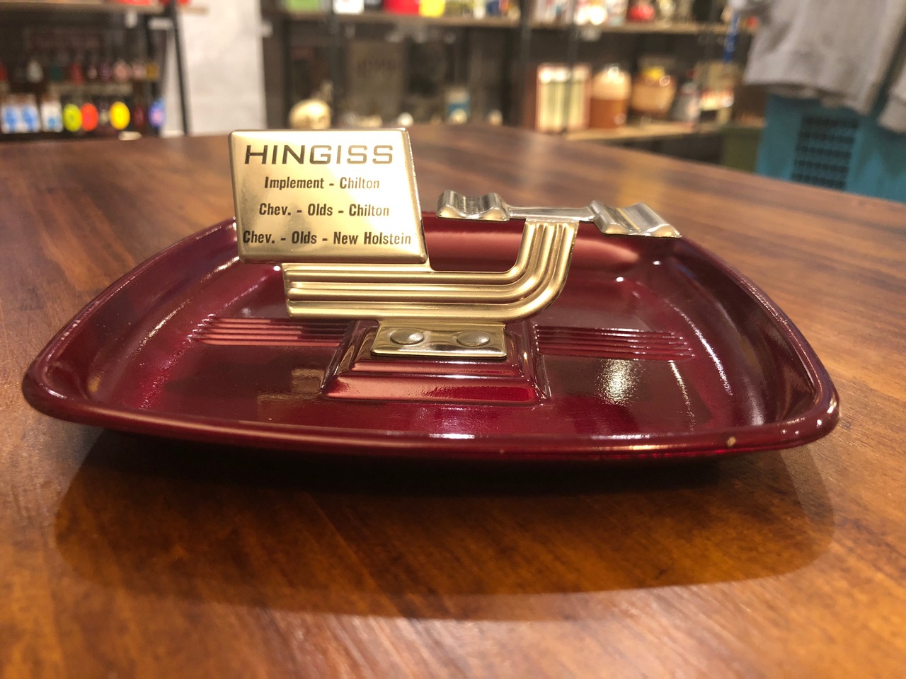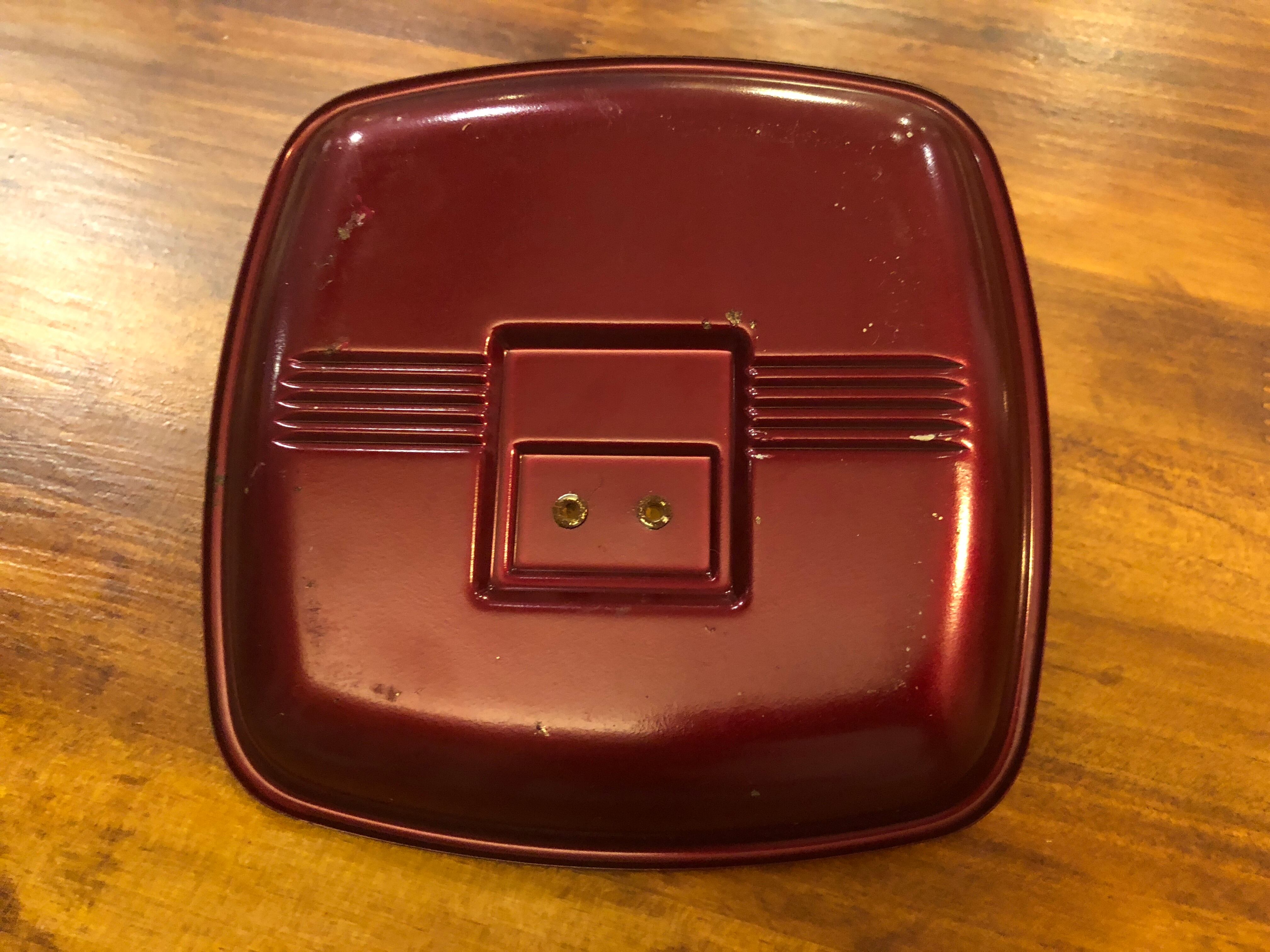 深いワインレッドカラーにクロームのキラッと光るプレートがカッコいい灰皿です!